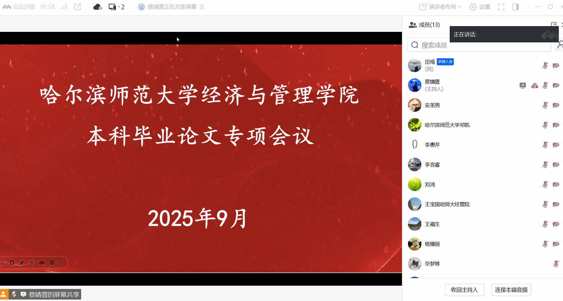 为确保2026届本科毕业论文工作顺利开展,提升毕业论文质量,经济与管理学院于9月17日14:00通过线上召开本科毕业论文工作专项培训会议。会议由副院长祁凯主持,学院全体教师参加培训。