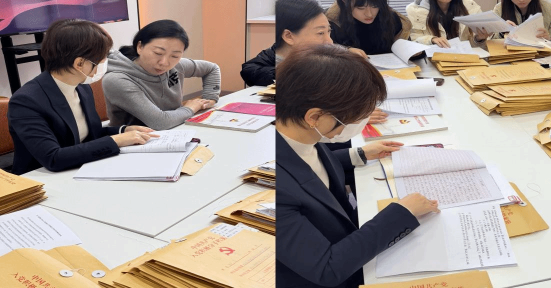 会议伊始,陈莹莹书记作动员讲话,强调学生党支部是党联系青年学生的桥梁纽带,支部书记要始终以“政治过硬、本领高强、作风扎实”为目标,在党员发展工作中严把“思想关、程序关、质量关”。她指出,本次培训交流与材料互查既是深化党支部书记能力作风建设的重要载体,也是以细化发展党员流程、查摆党员发展预审材料问题为契机,提升党支部书记党员发展工作规范化的实践练兵。随后,党委副处级组织员毕伟老师对标《中国共产党发展党员工作细则》和学校党员发展工作指导手册,系统梳理了本年度发展党员工作中申请入党、积极分子确定与培养、发展对象考察、预备党员接收与转正等阶段的问题,提出了材料归档的规范要求,重点强调了发展对象材料填写的易错点,并根据发展对象材料现场解答疑问。同时,陈莹莹与毕伟根据前期工作形成的各学生党支部发展对象预审材料问题清单,逐一检查指导本次发展对象预审材料,并与各位党支部书记充分交流工作中的问题与困难。