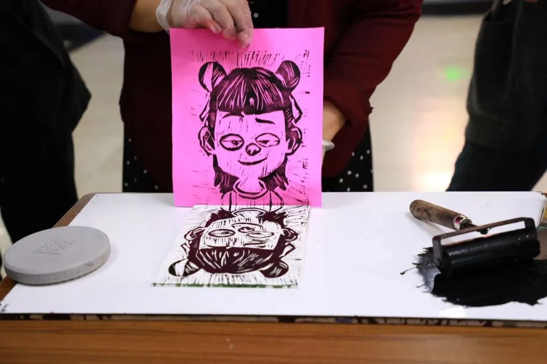 实践体验是传承精神的鲜活载体。活动尾声,师生们亲手参与版画制作的完整流程:将轮廓细心拓印于木板,持刻刀循着线条精心雕琢,每一刀起落都凝聚着专注与耐心。指尖的触感与创作的专注,让大家既真切感受了传统版画艺术的独特魅力,更在实践中体会到“精益求精、久久为功”的工匠精神,实现了红色认知与艺术实践的深度融合。