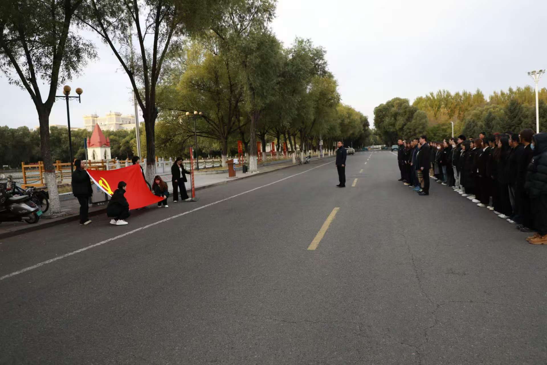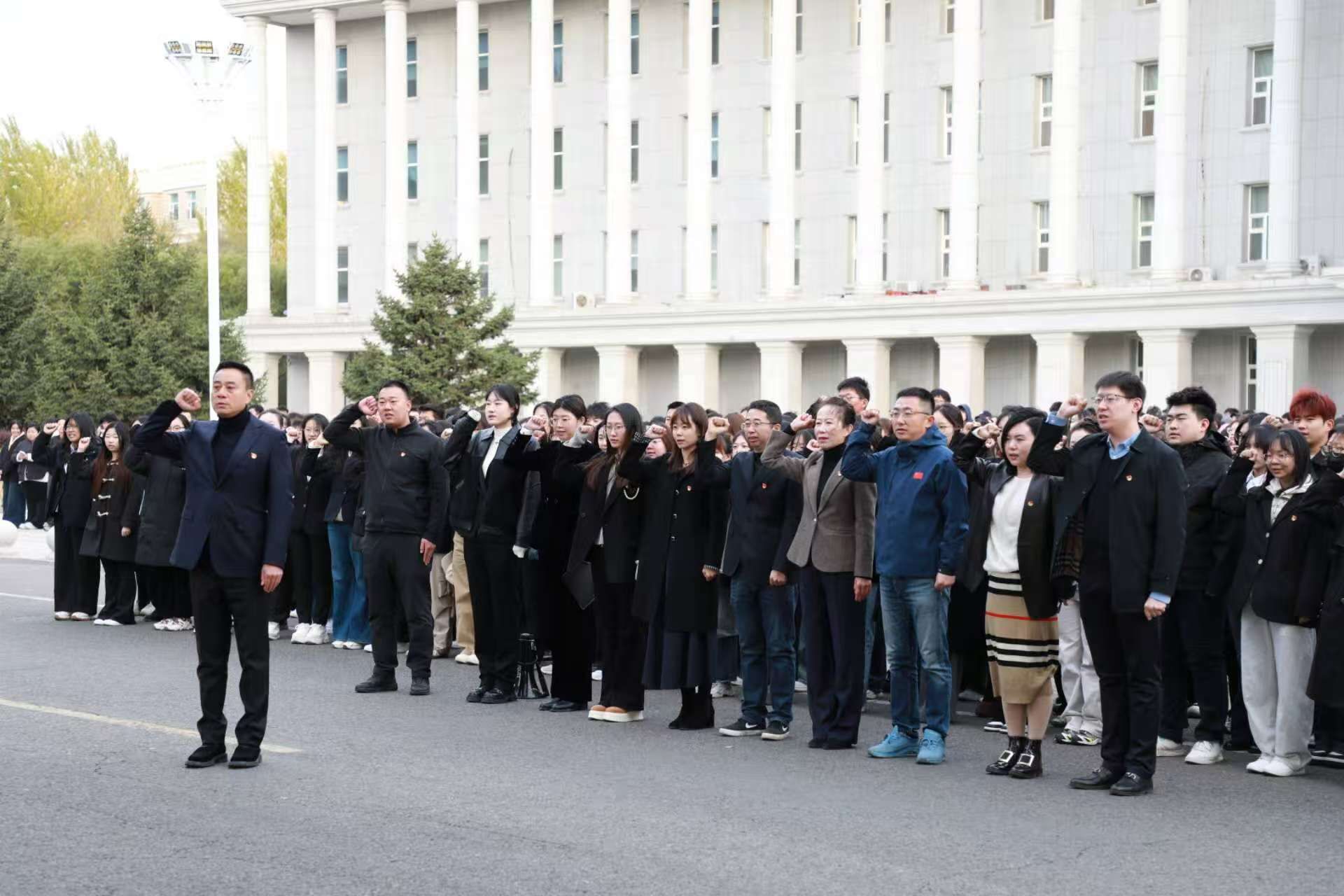 铭记伟大历史、传承和弘扬抗美援朝精神,为激励广大师生坚定理想信念、勇担时代使命,2025年10月13日7:00,经济与管理学院于国旗广场隆重举行“铭记伟大胜利 赓续英雄赞歌”抗美援朝纪念日主题升旗仪式。学院党委副书记翟力、全体辅导员、各基层学生党支部党员代表、入党积极分子及2025级全体学生共同参加仪式。本次升旗仪式由2023级辅导员李金蔚主持。