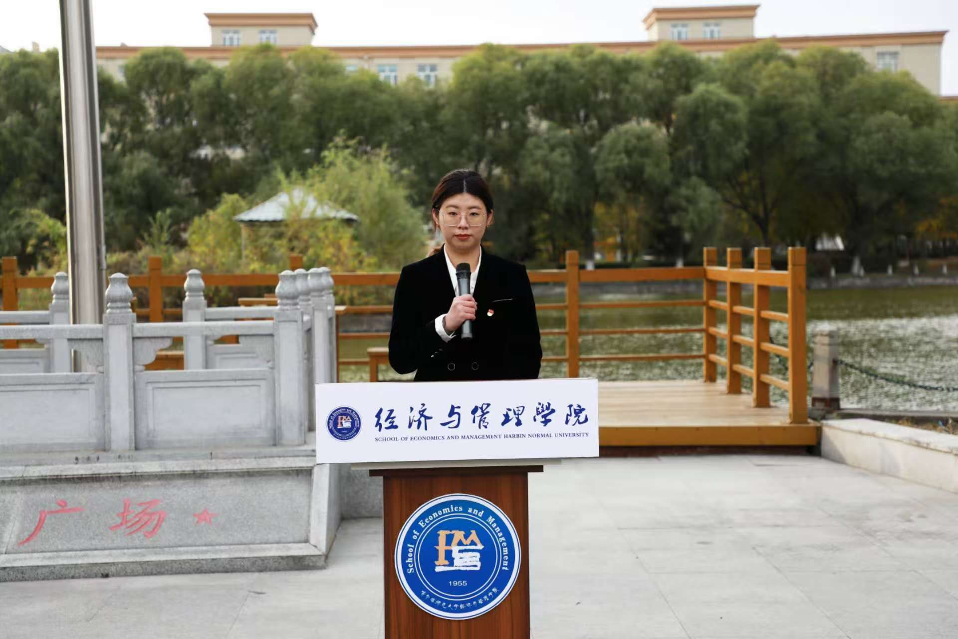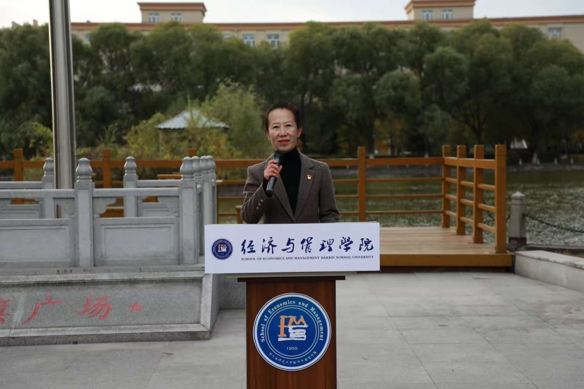 升旗仪式第三项,经济与管理学院党委副书记翟力讲话。讲话中要求全体师生要从中汲取“信念坚定、艰苦奋斗、敢于斗争、善于创造”的强大力量,将英雄精神内化于心、外化于行。她勉励同学们要坚定理想信念,将个人追求融入国家发展大局;锤炼过硬本领,成为可堪大用的栋梁之才;传承红色基因,在民族复兴的征程中奋勇争先,以青春之我、奋斗之我,为祖国建设贡献智慧与力量。