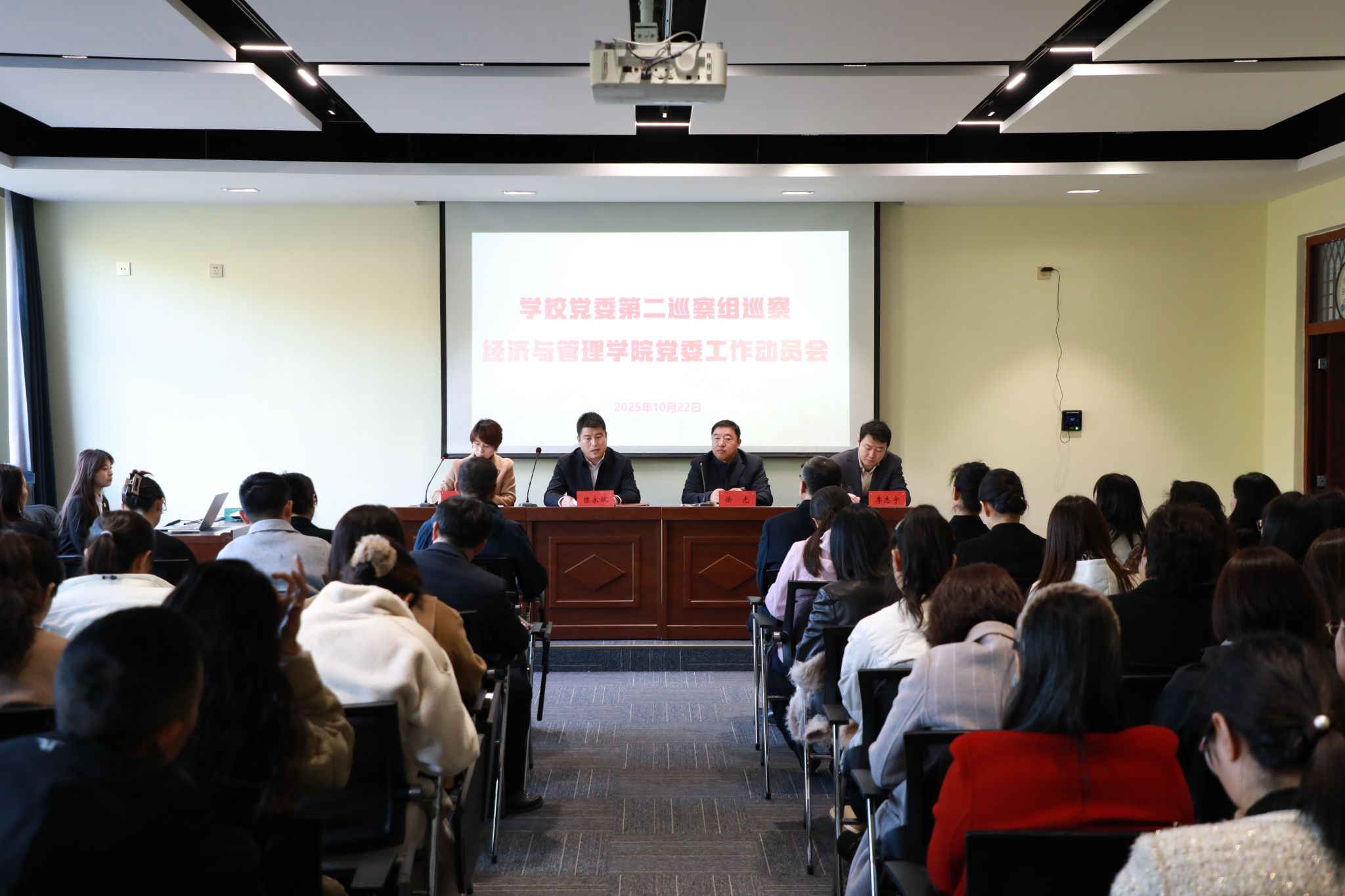 按照学校党委统一部署,10月22日下午,学校党委第二巡察组巡察经济与管理学院党委工作动员会议在崇师楼B318会议室召开。会议由经济与管理学院党委书记陈莹莹主持,学校党委第二巡察组组长陈永斌,副组长李志宇,巡察组成员李德刚、杨冬鹤、李维娜、李嘉炜、董博,经济与管理学院领导班子成员及全体教职工参加会议。