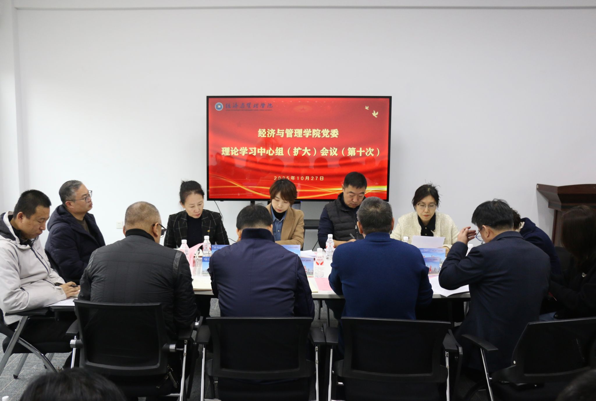 为深入学习贯彻习近平总书记关于做好新时代人才工作的重要思想,加快建设新时代人才强国,10月27日,经济与管理学院于崇师楼B316会议室召开以“聚焦人才强国战略,携手共建可持续未来”为主题的党委理论学习中心组(扩大)会议。学院党委理论学习中心组成员参加会议,第三互听组成员单位西语学院党委副书记吕会庆、东语学院副处级辅导员史许福、教育科学学院副处级辅导员刘恩权以及学校党委第二巡察组成员、生命科学与技术学院副处级辅导员杨冬鹤列席旁听会议。会议由学院党委书记陈莹莹主持。