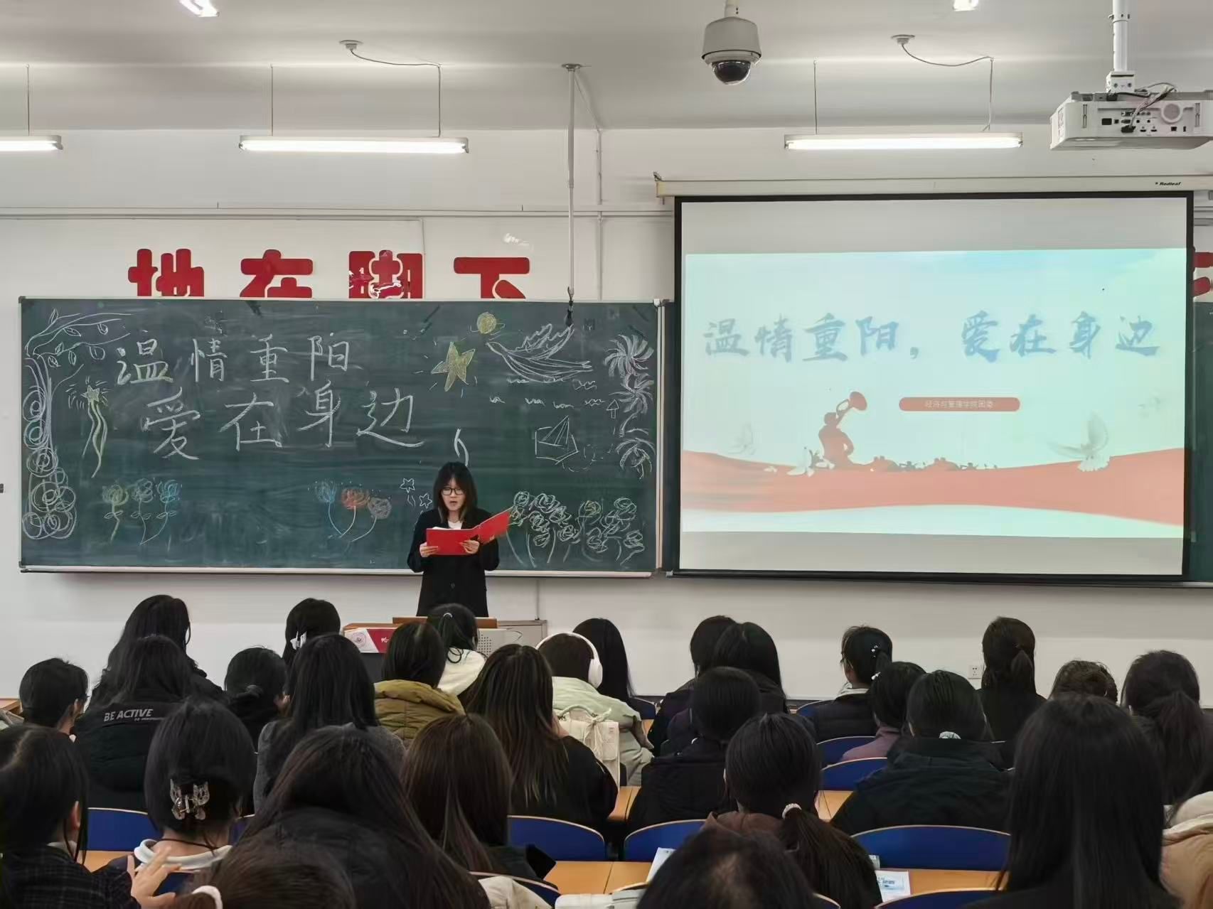 为传承中华民族敬老爱老的传统美德,深度引导广大青年学子感悟重阳文化的精神内涵,厚植感恩情怀与时代责任担当,经济与管理学院于2025年10月29日在崇师楼C203教室开展“温情重阳,爱在身边”主题活动,学院团委书记陈凤、各专业学生代表共110名参加,活动由院团委学生干部包凯主讲。