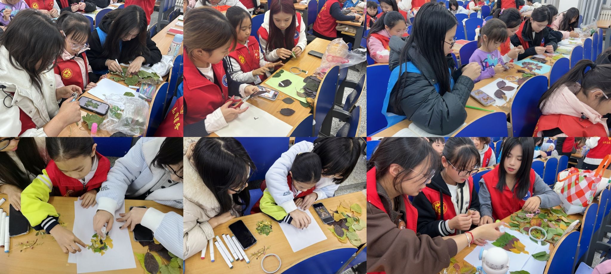 活动开始为大家介绍了重阳节“登高敬老、赏菊祈福”的传统习俗,随后志愿者和小朋友们便带着从师大校园中捡拾的落叶,化身创意达人专注地剪裁、拼贴、点缀,有的拼出各种图案和字样,有的绘出祖孙牵手的温馨场景,有的叠出盛放的菊花,每幅作品都满是童真暖意;待创作完成后我们进行了作品展示,而亲子间的默契协作、志愿者们的团结互助,也让这个重阳在文化传承与爱之陪伴中格外有意义。