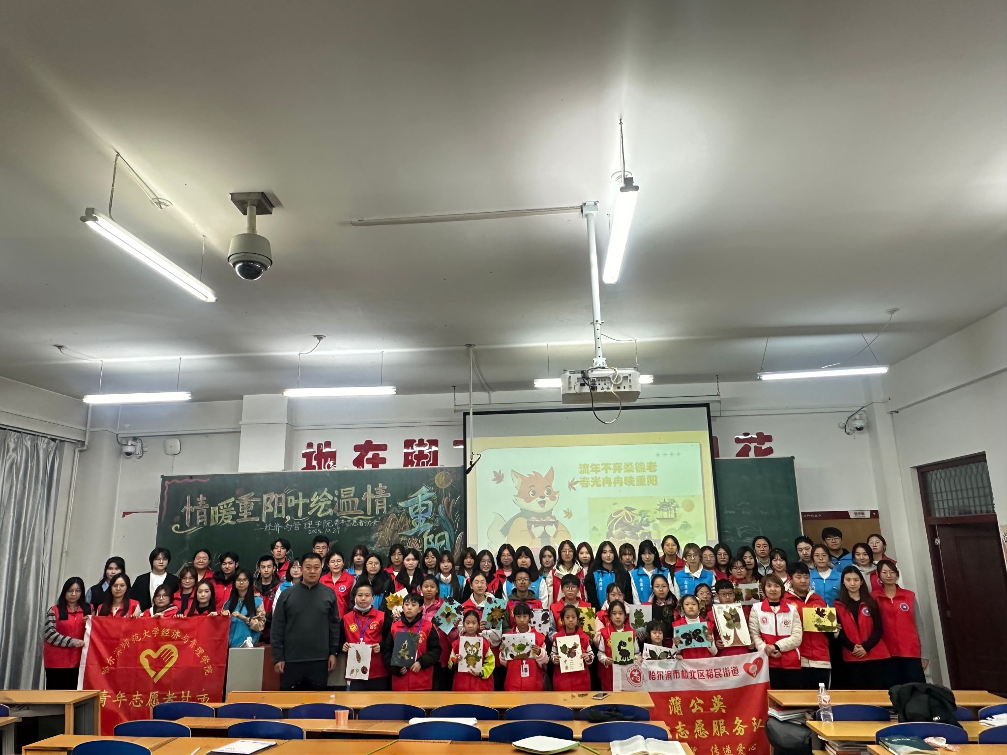 为深入贯彻落实社会主义核心价值观教育,弘扬中华民族孝亲敬老的传统美德,在重阳节这一具有深厚文化内涵的传统节日之际,哈尔滨师范大学经济与管理学院青年志愿者协会精心策划,于2025年10月29日下午15:00在崇师楼D204教室隆重开展“情暖重阳,叶绘温情”校园公益主题主题活动。此次活动与哈尔滨市松北区裕民街道“蒲公英爱心志愿服务队”共同完成,50余名志愿者,20余名小朋友参加。