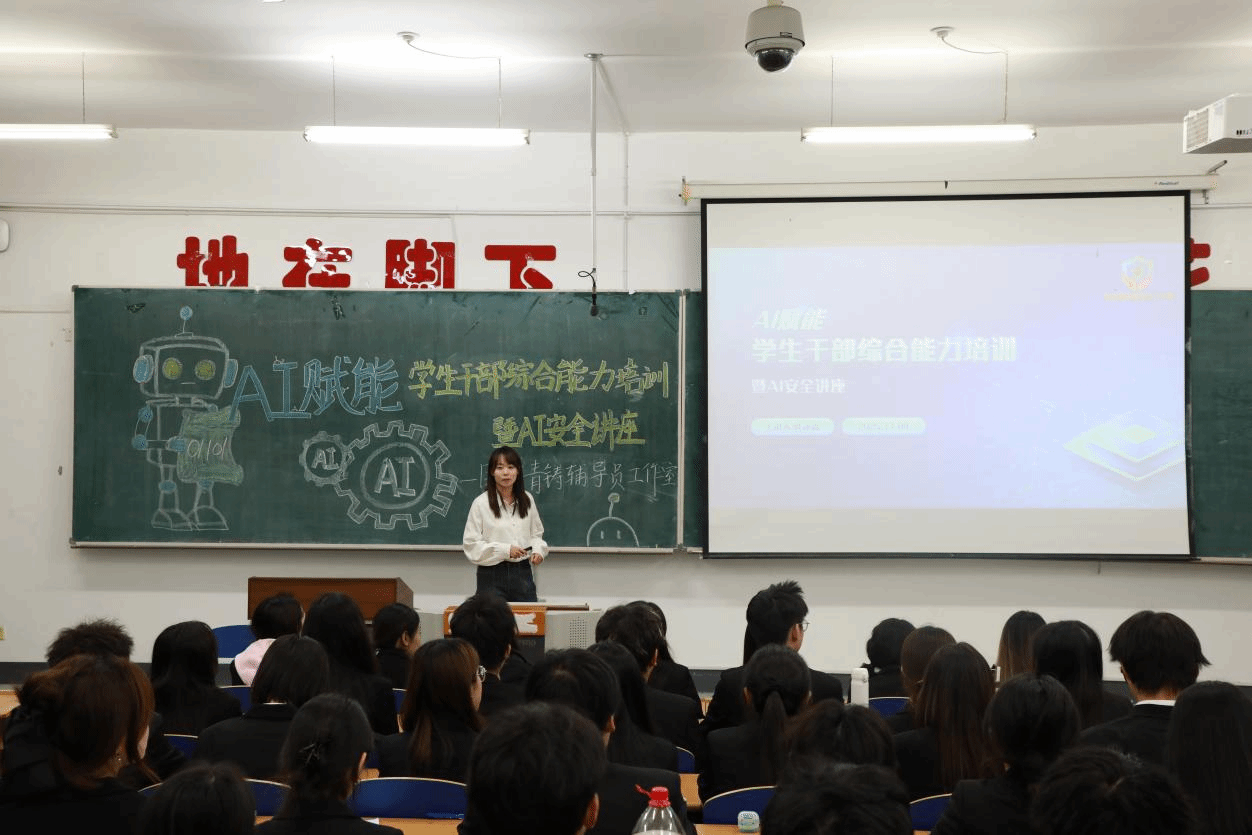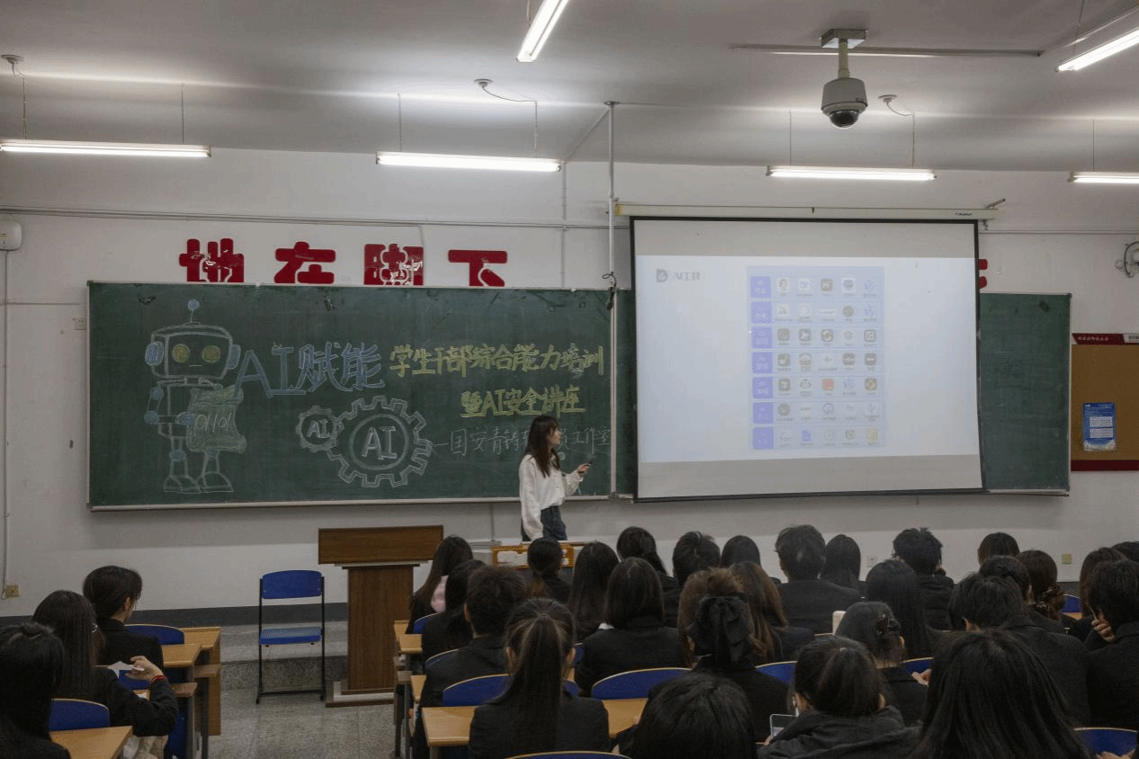 为进一步提升学生干部的综合素养与工作效率,充分发挥AI技术在学生工作中的赋能作用,经济与管理学院国安青铸辅导员工作室于11月4日18:20在崇师楼C203开展“AI赋能学生干部综合能力培训暨AI安全讲座”,学院各学生组织的学生干部、班级班长、团支书共一百余人参加。
