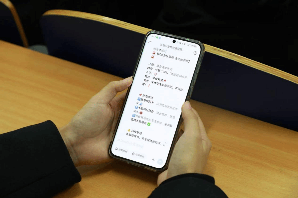 讲座现场,龚老师还带领大家进行AI的实操练习,参加培训的全体学生干部利用电子设备积极进行实际操作,从实践中学习使用AI并应用到今后日常工作和学习中。所有学生干部通过龚老师的讲解,对提示词和指令一步步优化,转化出的日常通知及各种工作内容有了丰硕的收获。每个人都将理论知识转化为实践,对AI的使用也都有了进一步的理解,为学生干部们日后使用AI处理日常工作积累了丰富的经验。