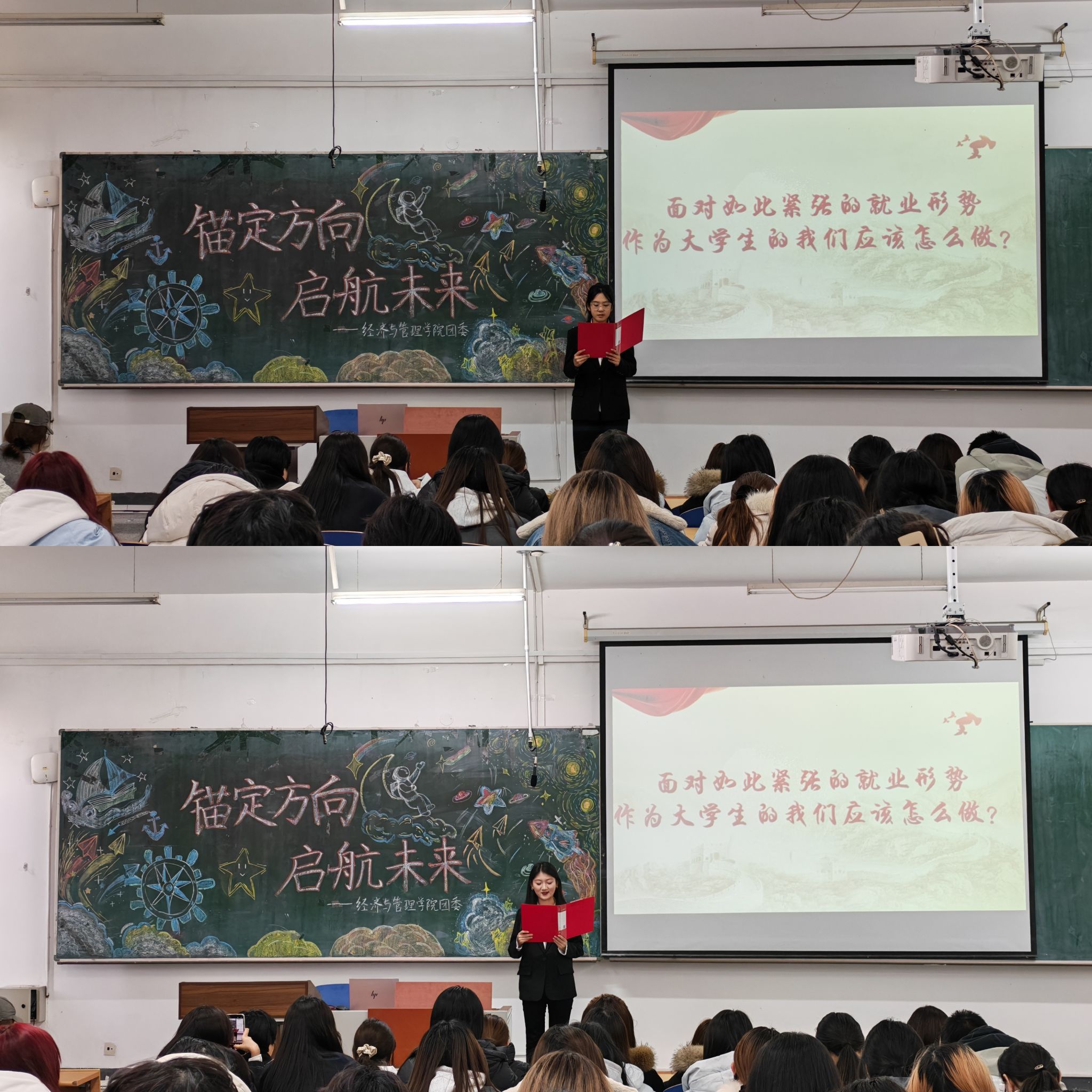 为贯彻落实学校就业育人工作要求,引导学生明确学业目标与职业方向,科学规划学习生活,经济与管理学院于2025年11月5日13:30在崇师楼D202举办“锚定方向 启航未来”职业生涯规划主题团日活动,学院团委书记陈凤、各专业代表共230名参加,活动由院团委干部曲妍熹主讲。