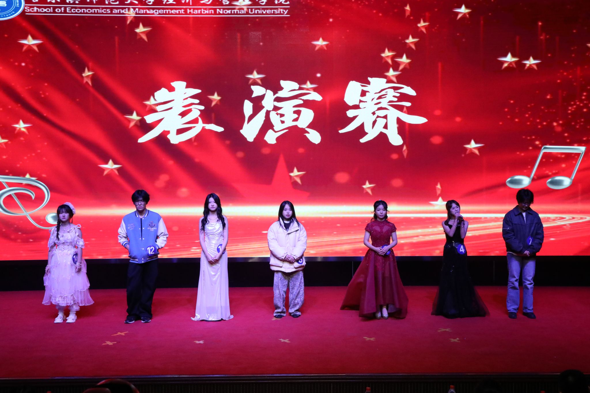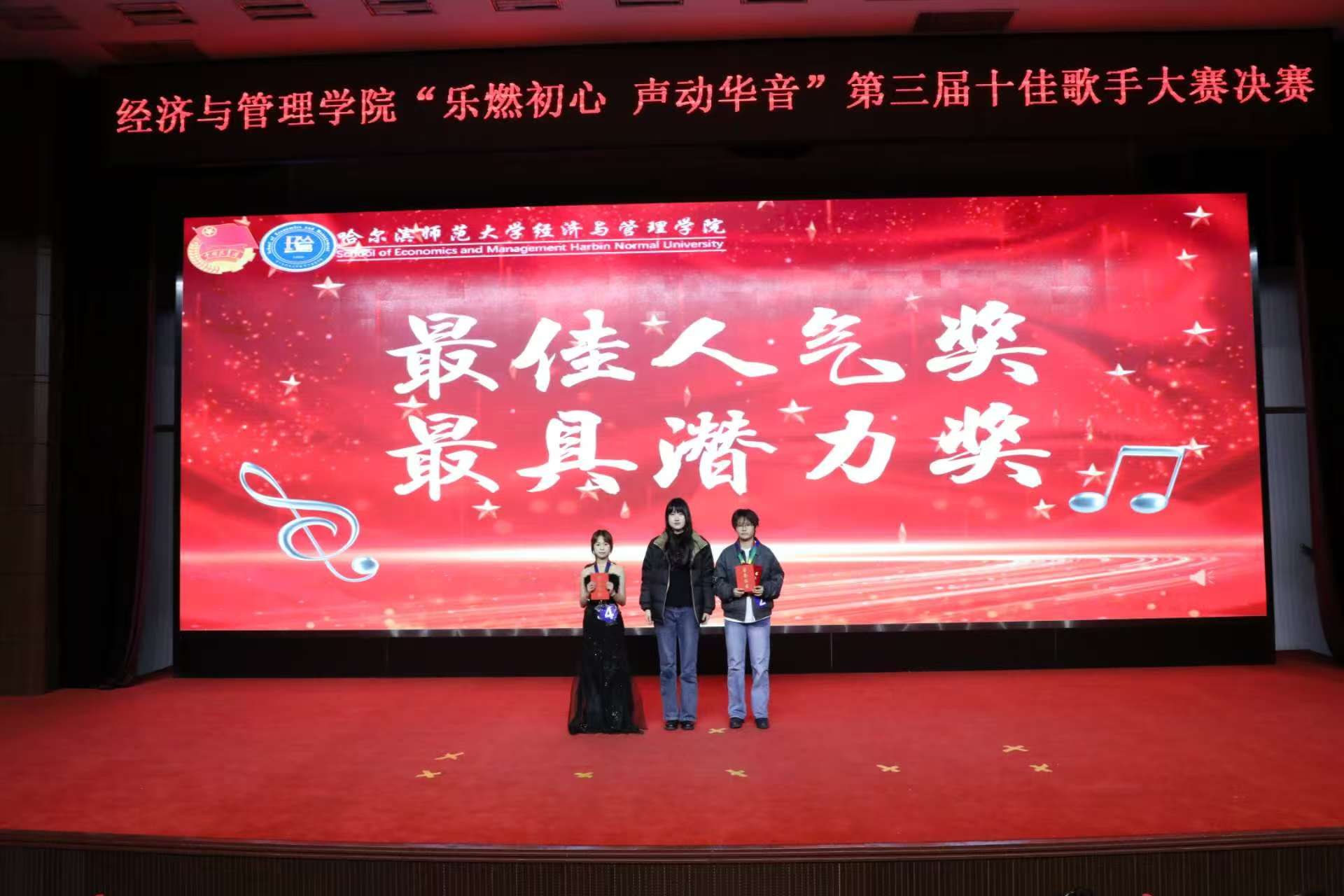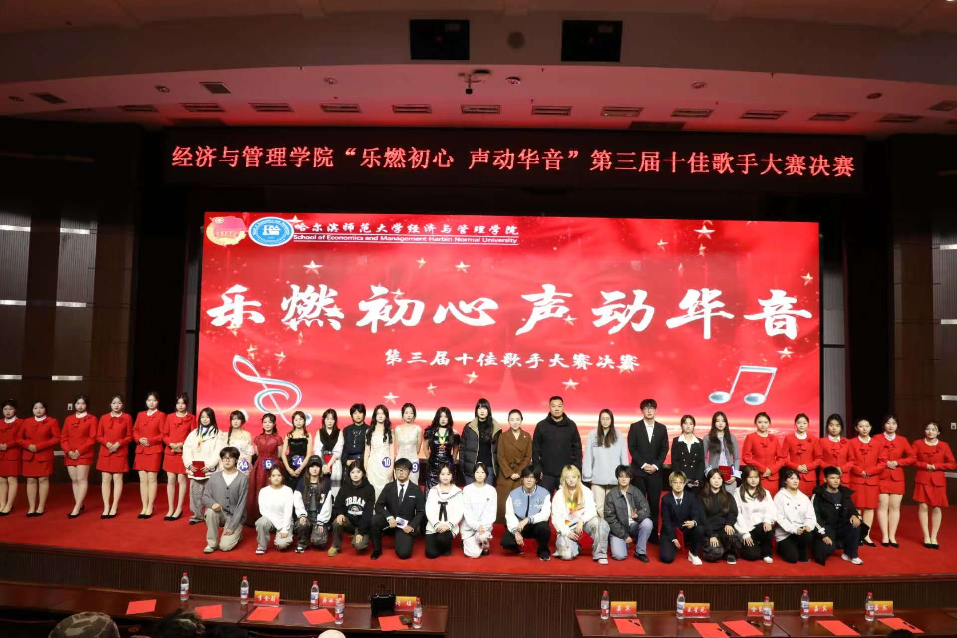 为进一步丰富校园文化活动,营造积极向上的学院风气,彰显经管学子的青春风采与奋进姿态,经济与管理学院团委于2025年11月18日18:00在科学会堂举办“乐燃初心,声动华音”经济与管理学院第三届十佳歌手大赛决赛。出席本次决赛的嘉宾有经济与管理学院团委书记陈凤和辅导员代表龚泳霖老师、姬晨毓老师、李金蔚老师、佟瑶老师。担任本次决赛的评委有经济与贸易系教研室主任王星元老师,2022级本科生辅导员、艺术学硕士金东旭老师,哈尔滨师范大学第三十五届校园十佳歌手葛珩宇,哈尔滨师范大学第三十六届校园十佳歌手贾雨航、经济与管理学院第二届十佳歌手大赛冠军陈宏博。