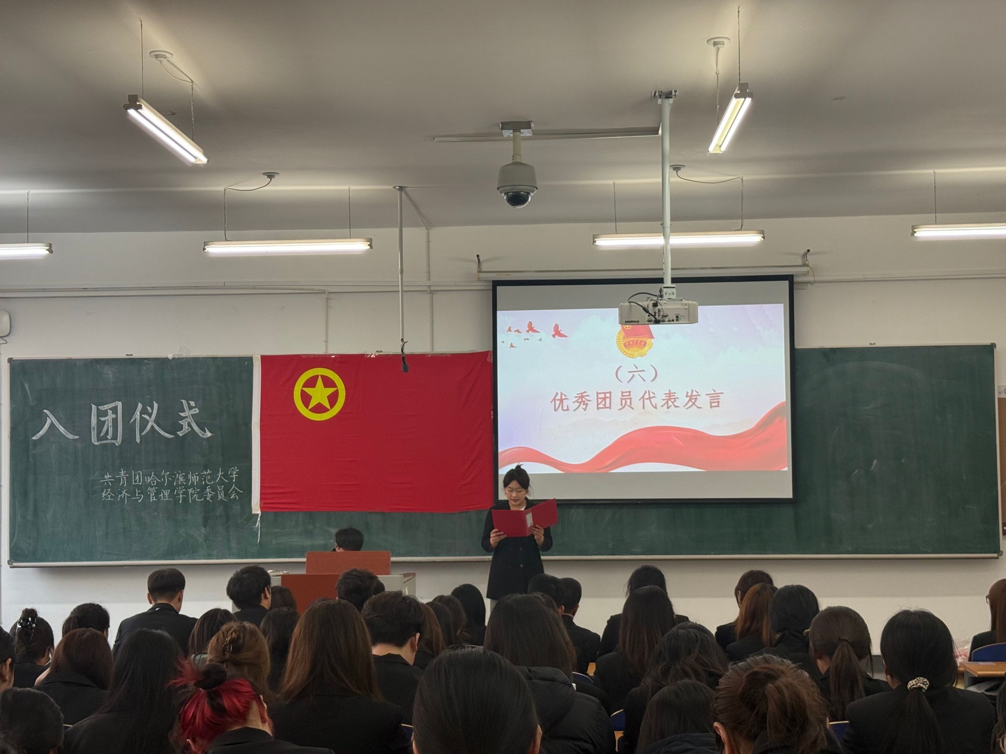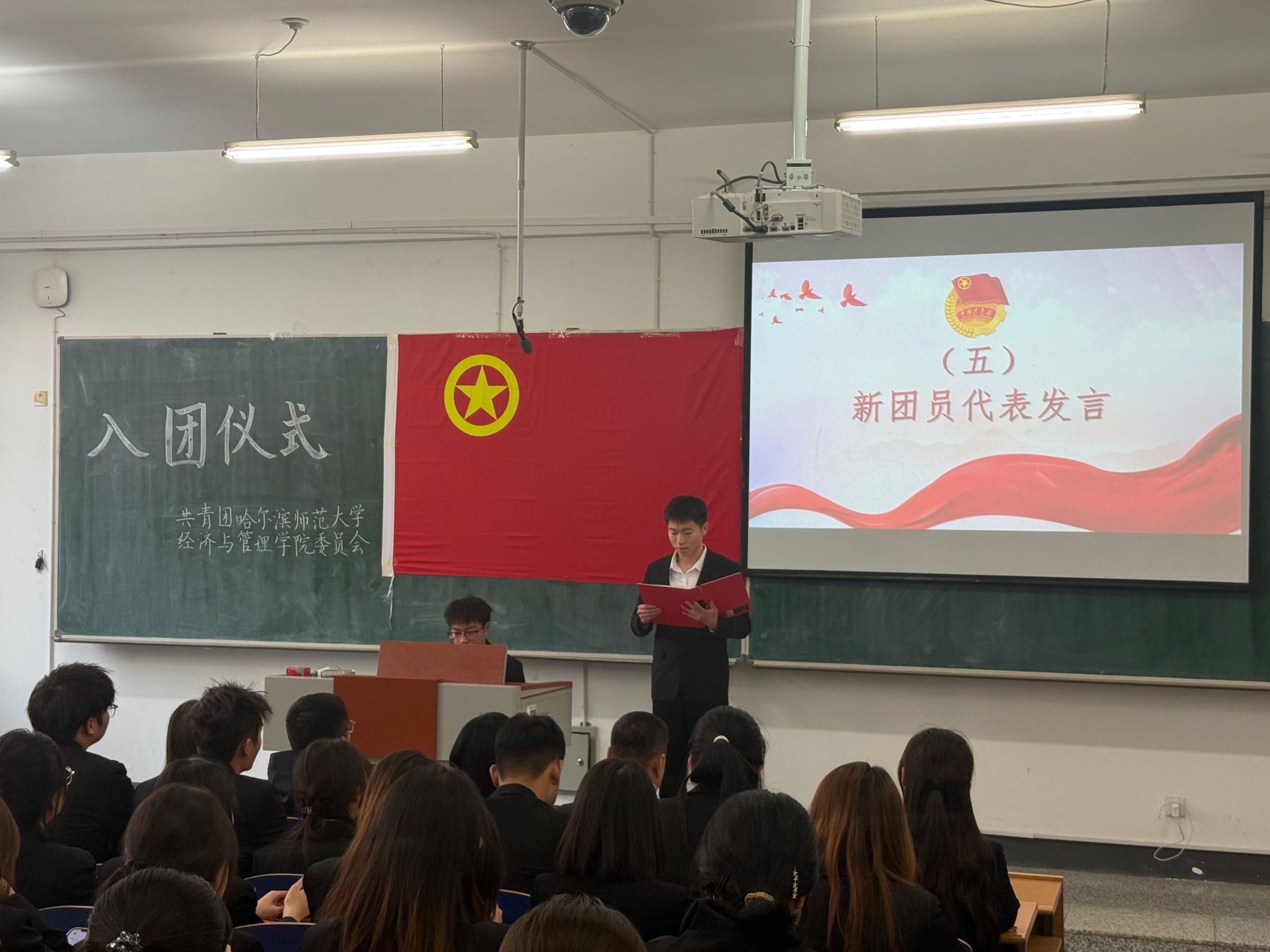 为深入贯彻落实习近平总书记关于青年工作的重要思想,夯实基层团组织根基,提升团员队伍先进性和凝聚力,激励广大青年厚植爱国情怀、筑牢思想防线、勇担时代使命,经济与管理学院于2025年11月19日14:20在崇师楼D204举办新发展团员入团仪式。参与此次仪式的有学院团委书记陈凤、学工办主任徐子恒、辅导员代表龚泳霖、王秋伟、各年级团员代表及100名新发展团员。
