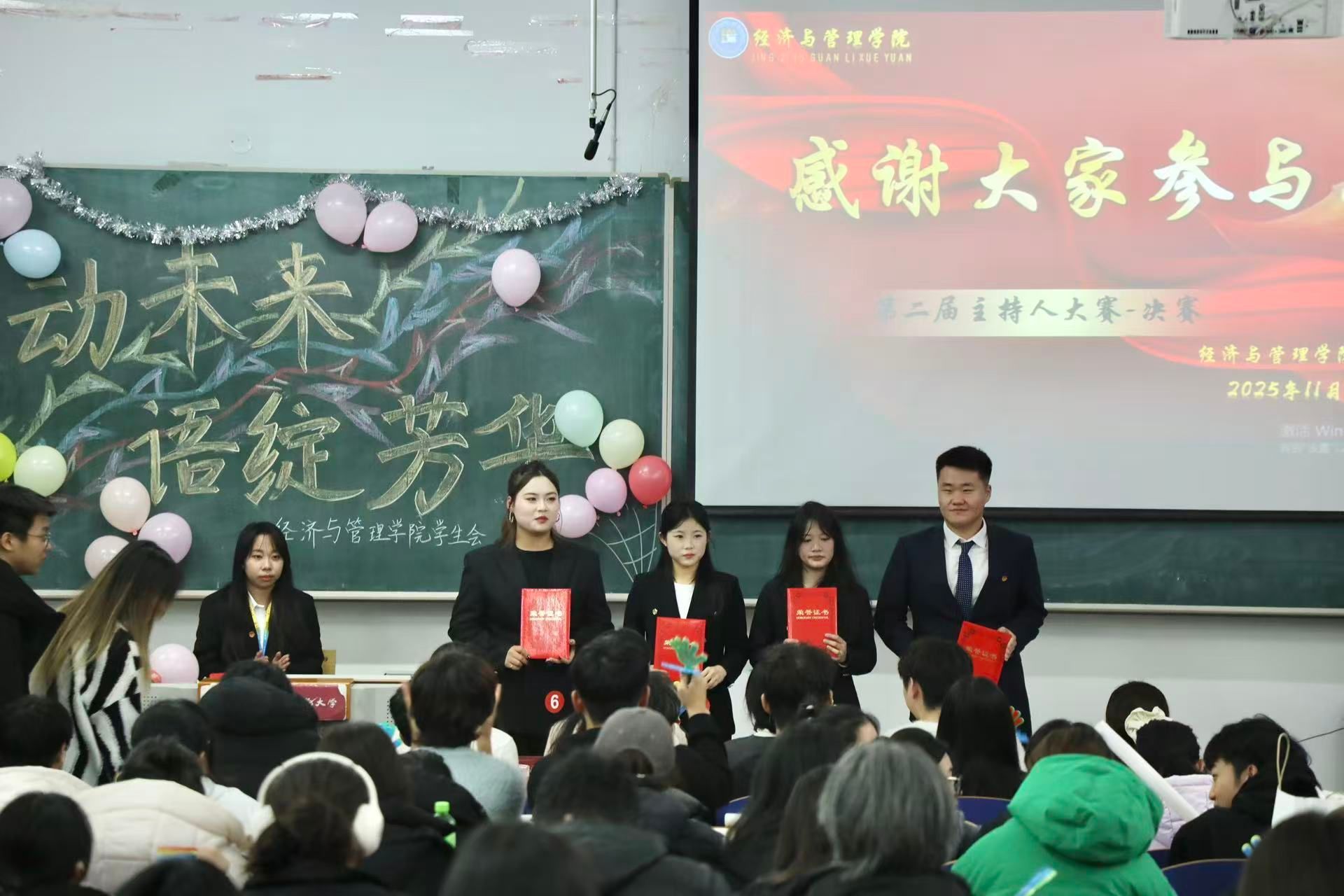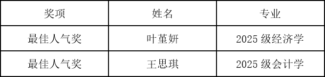 时光匆匆,帷幕徐落。此次比赛让我们见证了才艺的绚烂,感受了青春的蓬勃,更看到经管学子的无限可能。愿往后岁月里,经管学院学生会将以此次活动为契机,引导学生大胆地展现自我,用热爱书写经管学子的精彩篇章,以激情描绘属于青春的壮丽画卷。