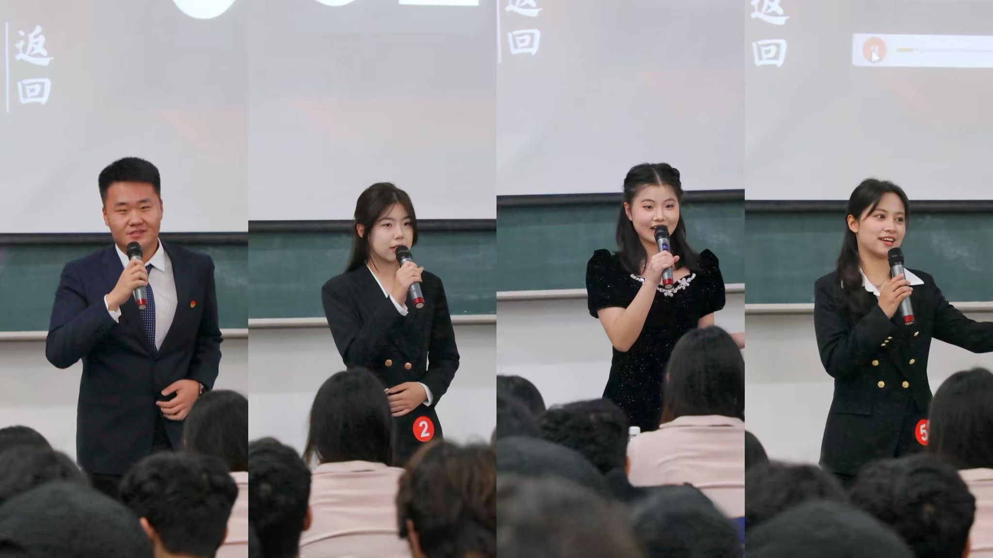 以声音传递理想之光,用语言凝聚奋进力量。为厚植校园文化底蕴,赋能青年综合素养提升,助力学子在语言表达、艺术审美与逻辑思辨的多维赛道上绽放光彩,经济与管理学院学生会于2025年11月23日在崇师楼D502教室成功举办经济与管理学院“‘声’动未来,‘语’绽芳华”第二届主持人大赛决赛。决赛邀请哈尔滨师范大学广播电台台长金美初、哈尔滨师范大学校主持人大赛一等奖获得者苗竣淞、经济与管理学院第一届主持人大赛冠军娄钰晗担任评委。此次活动共计200余名学生参加。