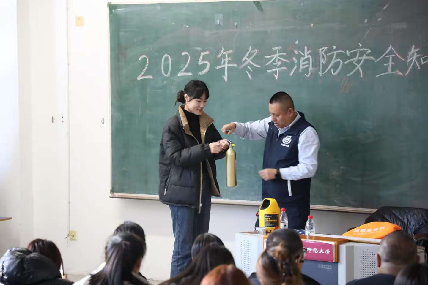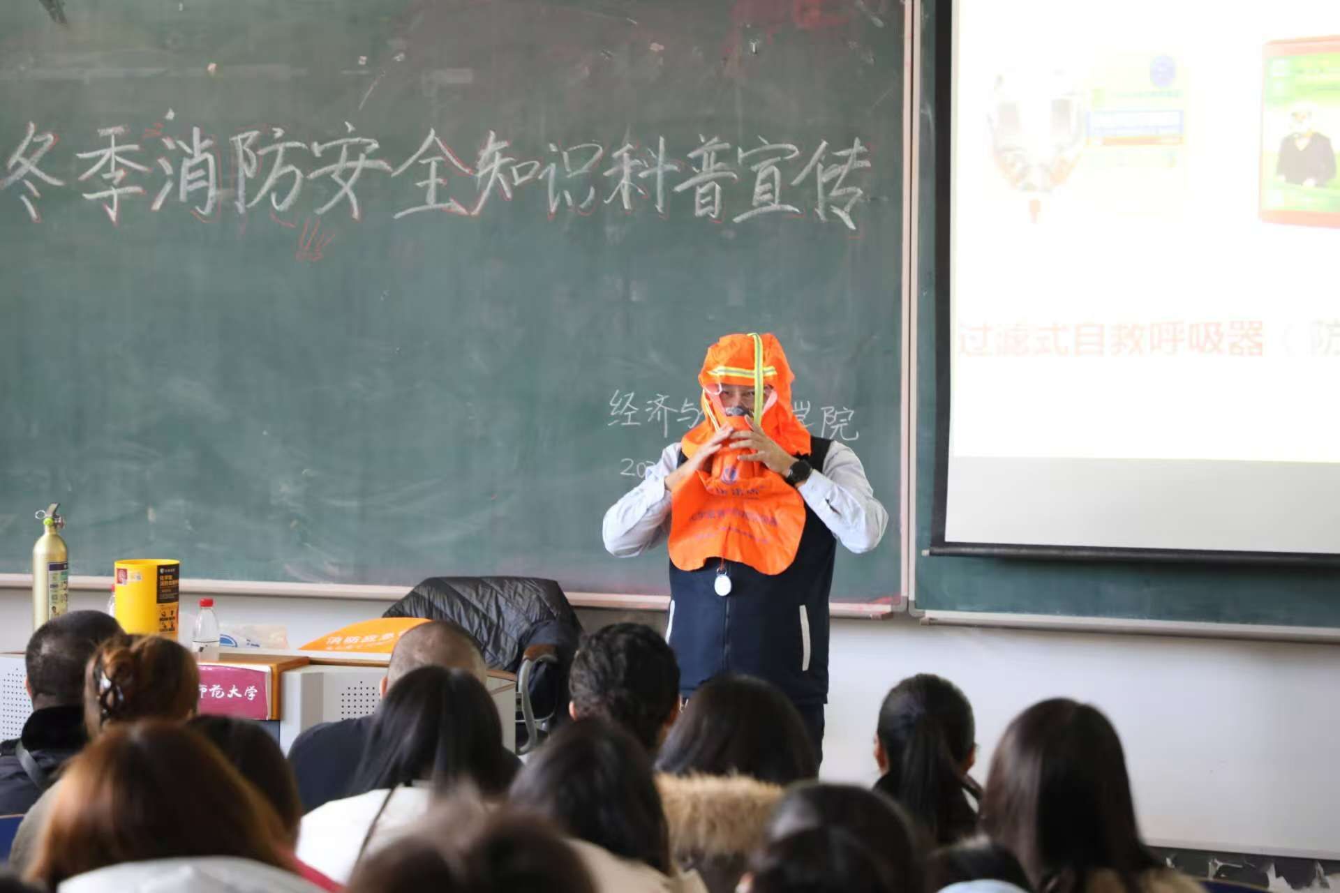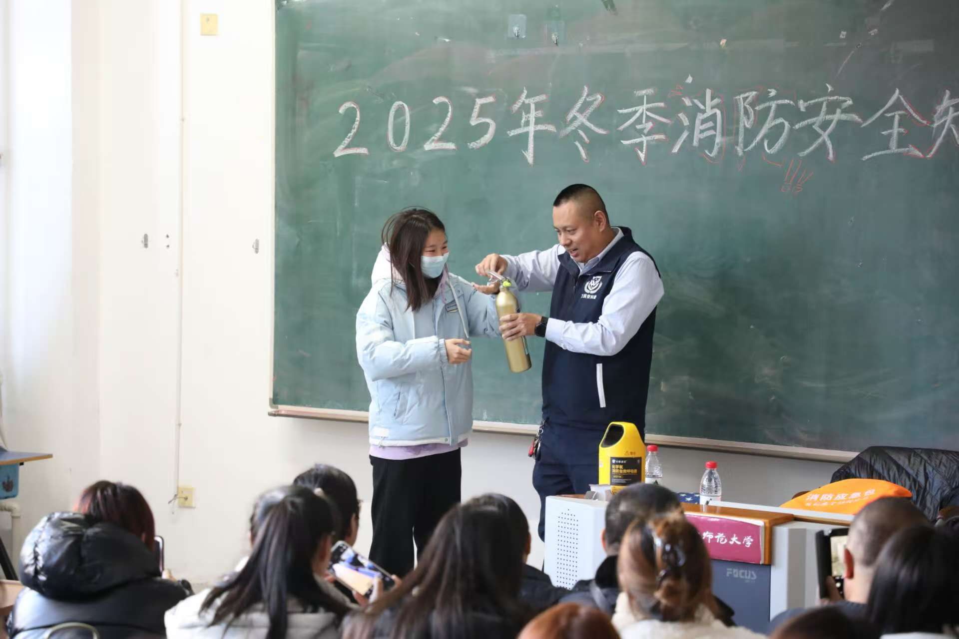 为深入贯彻习近平总书记关于应急管理的重要论述和消防工作重要指示批示精神,扎实推进学校“11·9”消防宣传月活动,切实增强师生员工消防安全意识和火灾防范能力,全力营造平安和谐的校园环境。2025年11月27日下午13:30,经济与管理学院于崇师楼C204开展“知火情·速逃生”消防知识讲座及演练活动,本次活动邀请哈尔滨卫民安消防知识宣传中心主任姜言君担任主讲及演练总指挥,学院领导、老师以及各年级学生代表共120余人参与。