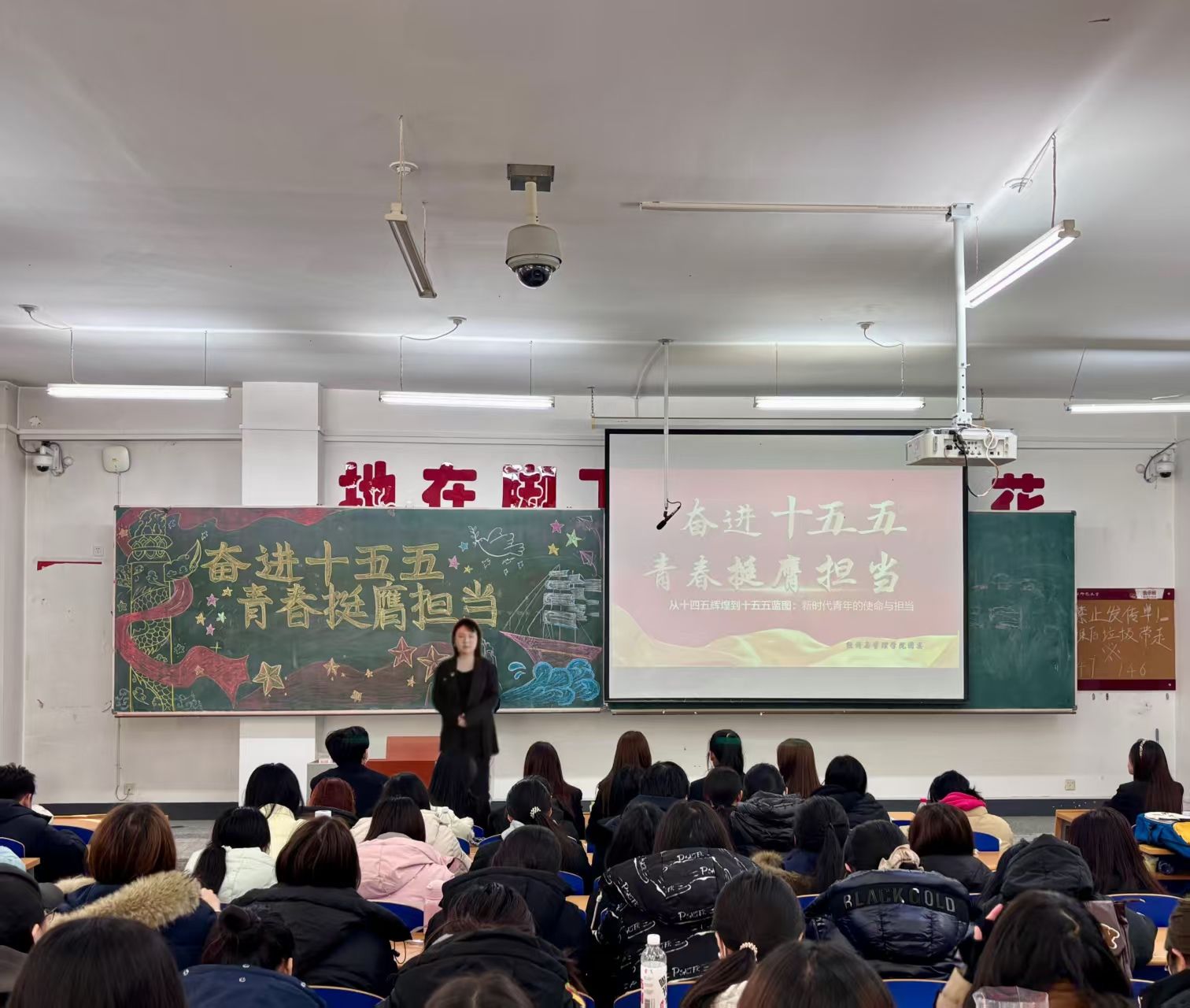 首先,陈凤老师围绕“‘十五五’规划的时代内涵”与“新时代青年的使命担当”进行讲解。她强调,“十五五”是国家迈向现代化的关键征程,更是青年施展才华的广阔舞台。她鼓励同学们要锤炼过硬本领,把个人理想融入家国大业,用实干诠释“请党放心、强国有我”的铮铮誓言。
