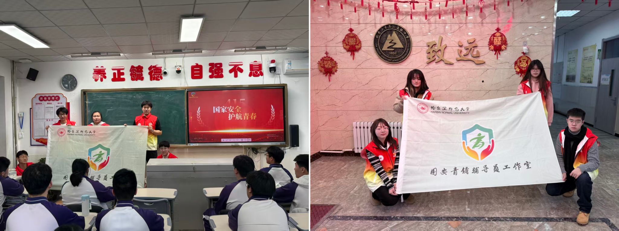 从大学校园到中学课堂,从理论学习到生动实践,国家安全教育的薪火,在一批哈师大学子的躬身践行中正迸发出璀璨的青春光芒。这个寒假,“我的师大我代言”活动不再只是一次简单的母校回访,更是一场国家安全观的“青春巡礼”。哈尔滨师范大学“国安青铸”辅导员工作室精心策划并组建了七支国家安全宣传团队,重返各自高中母校,开展了一系列内容丰富、形式新颖的国家安全教育宣传活动,将国家安全意识的种子播撒在莘莘学子的心田。