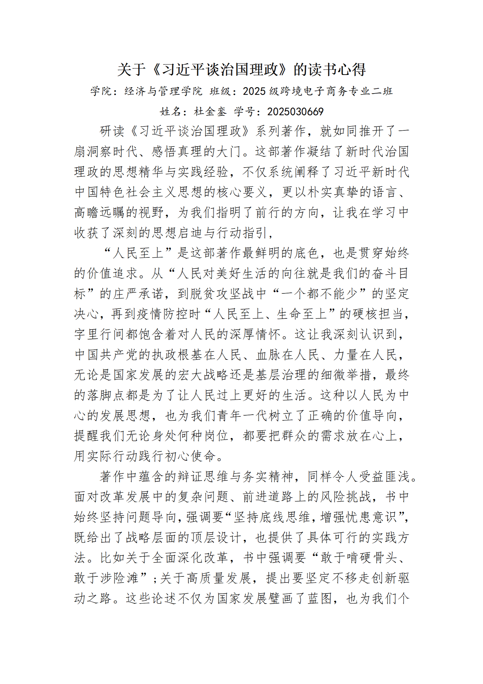 为深入学习贯彻习近平新时代中国特色社会主义思想,引导青年学子强化理论武装、厚植家国情怀,进一步明晰新时代青年的责任与使命,经济与管理学院于寒假期间开展“青年大学习”第二课堂阅读活动,以《习近平谈治国理政》第五卷为核心书目,组织全院学子潜心研读、撰写心得,让理论学习成为寒假成长的鲜明底色。