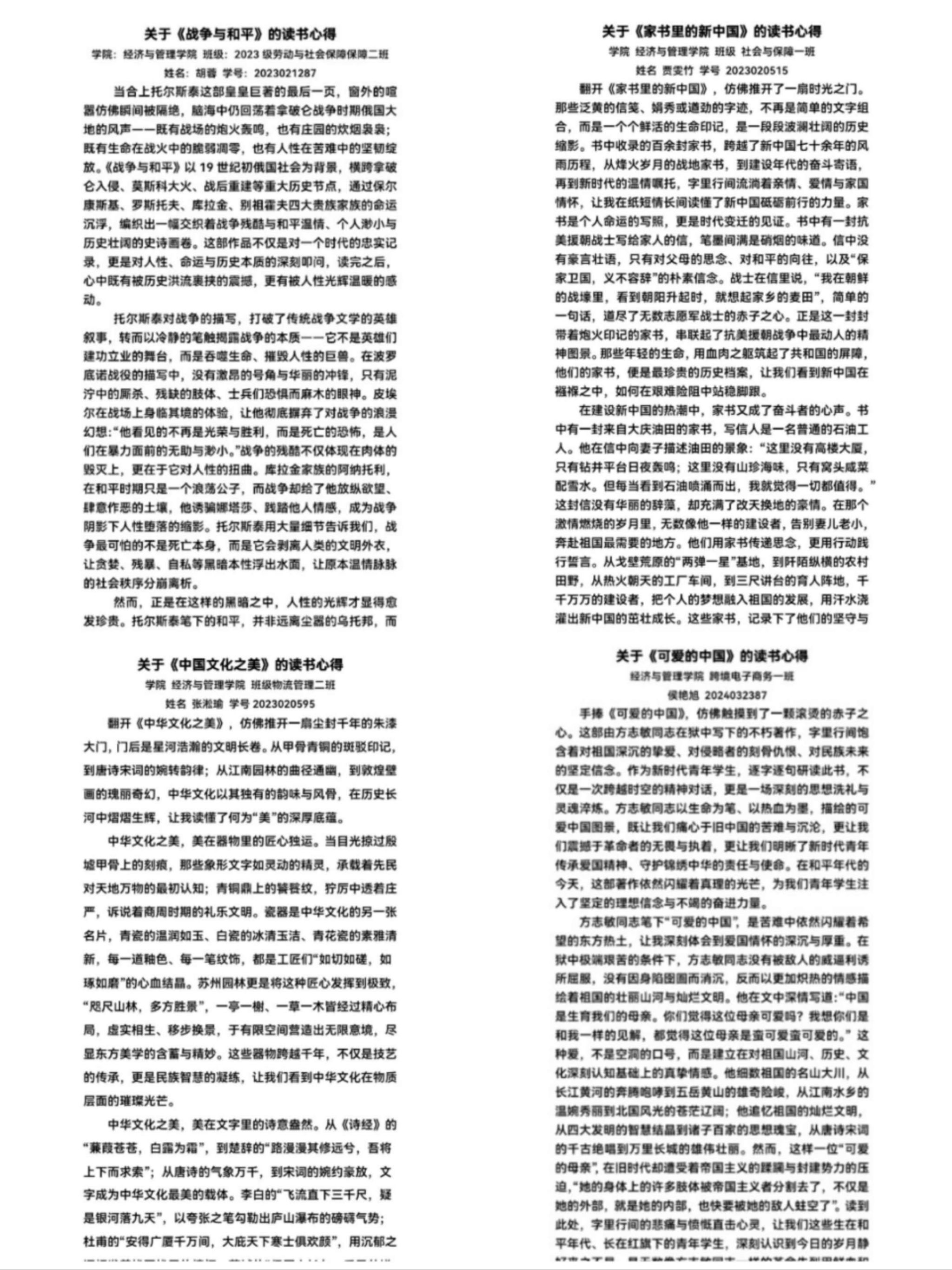 此次活动旨在借助深度阅读与思想交流,促使大家从经典著作中汲取智慧、汇聚力量,更新个人的“国安知识库”,全方位拓展理论宣讲的深度与广度,为后续开展形式丰富的国家安全宣传教育活动夯实基础。 本次读书实践活动精心挑选了 5 部兼具思想性、知识性与指导性的经典著作,包括《战争与和平》《可爱的中国》《家书里的新中国》《中国传统文化精神》《中国文化之美》。这些著作涵盖了历史认知、家国情怀、文化传承等多个维度,为核心成员构建了多维立体的学习框架。