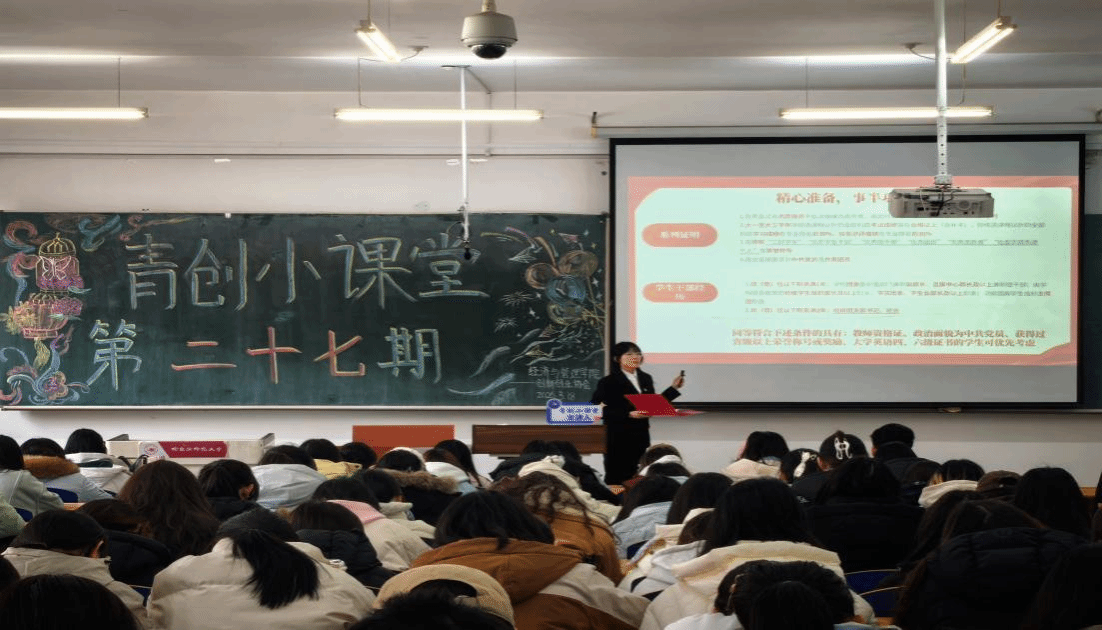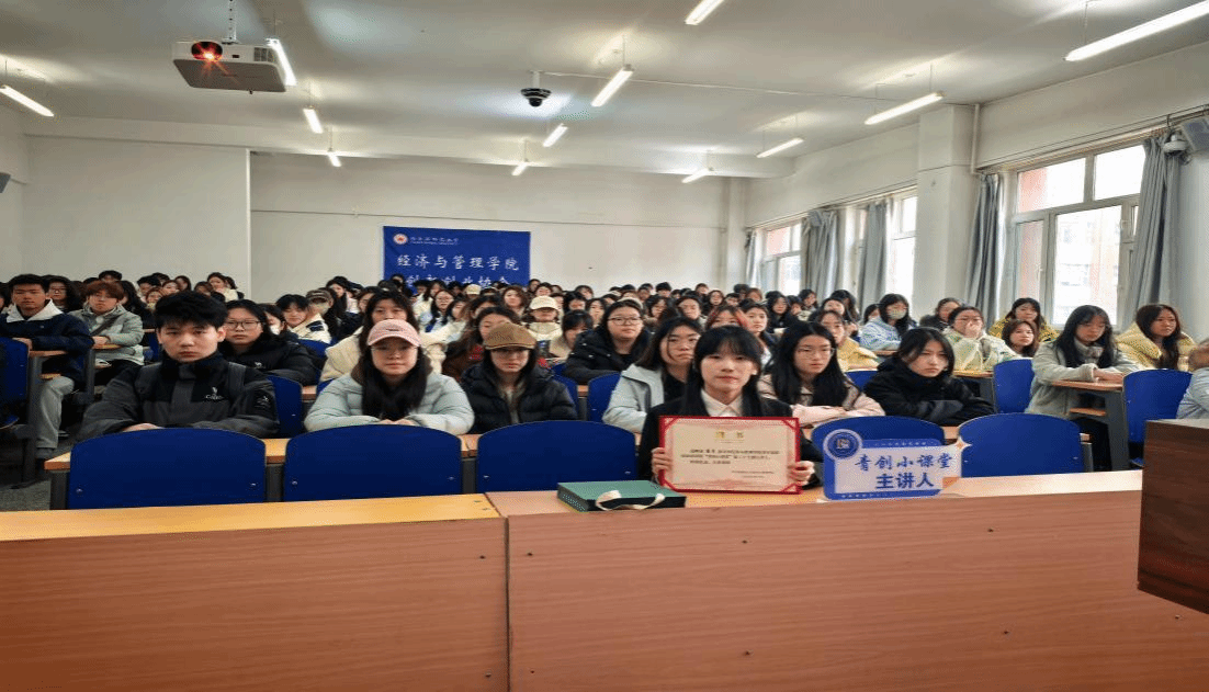 为扎实推进志愿服务育人工作,厚植青年学生的社会责任感和家国情怀,提升学生的综合实践能力和教育服务素养,持续引导青年学予以青春之力践行教育初心、传递温暖希望。经济与管理学院创新创业协会于2026年3月18日13:30在崇师楼D203举办“青创小课堂”第二十七期讲座。本次讲座邀请哈尔滨师范大学第十一届研究生支教团成员、经济与管理学院2022级经济学专业唐月同学主讲,讲座共有200余名学生参加。