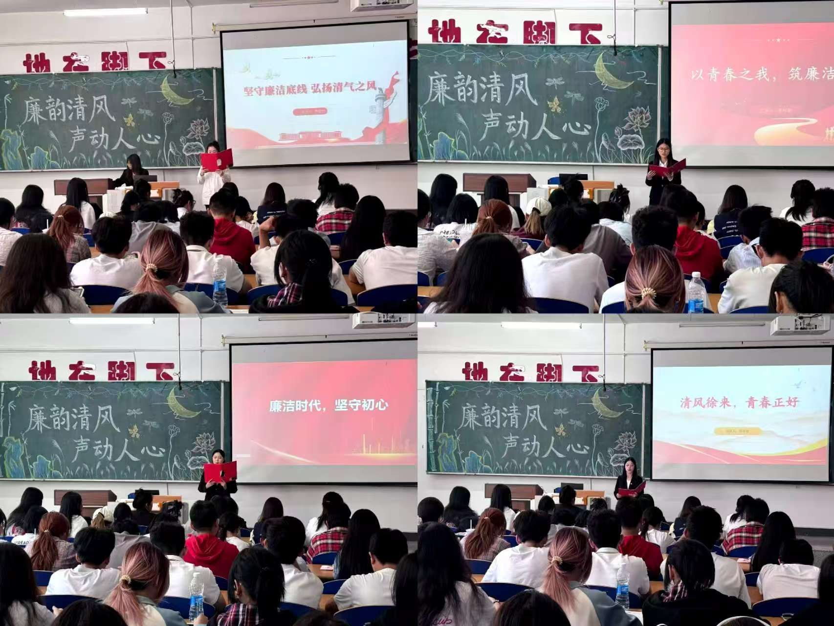 为进一步加强青年学子廉洁素质培育,将敬廉崇洁理念融入成长日常,持续推动学院党风廉政建设提升,构建清正廉洁的育人环境。经济与管理学院于9月10日下午在崇师楼C203举办了“廉韵清风,声动人心”主题演讲比赛。学院团委书记陈凤,本科生党支部党员代表、各专业学生代表共80人参加此次活动。