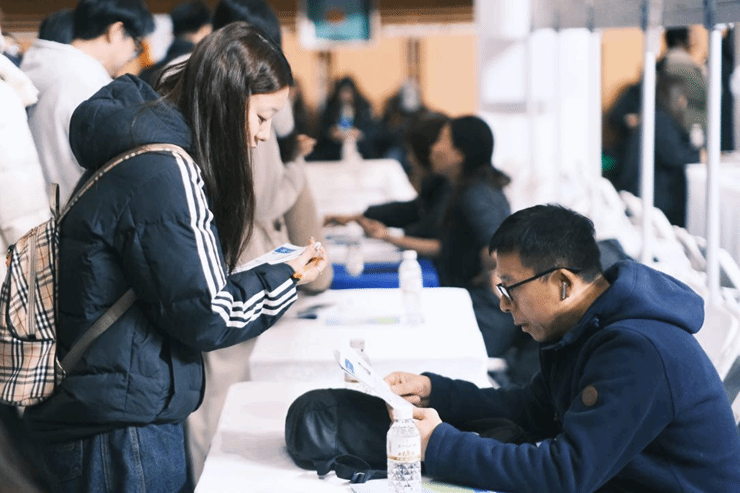 招聘会现场人头攒动、氛围热烈,毕业生们手持精心打磨的简历,在各展台间穿梭驻足,主动上前与用人单位深入沟通,咨询岗位详情、职业发展路径,全面了解行业最新发展趋势与市场需求动态,求职热情十足,现场洽谈氛围浓厚。