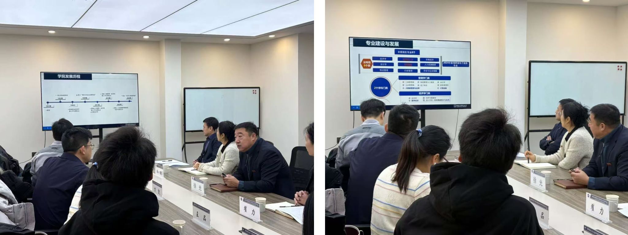 在交流研讨环节,双方围绕教育资源有限背景下的学院发展路径展开深入讨论,聚焦专业招生、师资队伍建设、实验室建设等关键议题,分享经验做法、探讨可行方案。