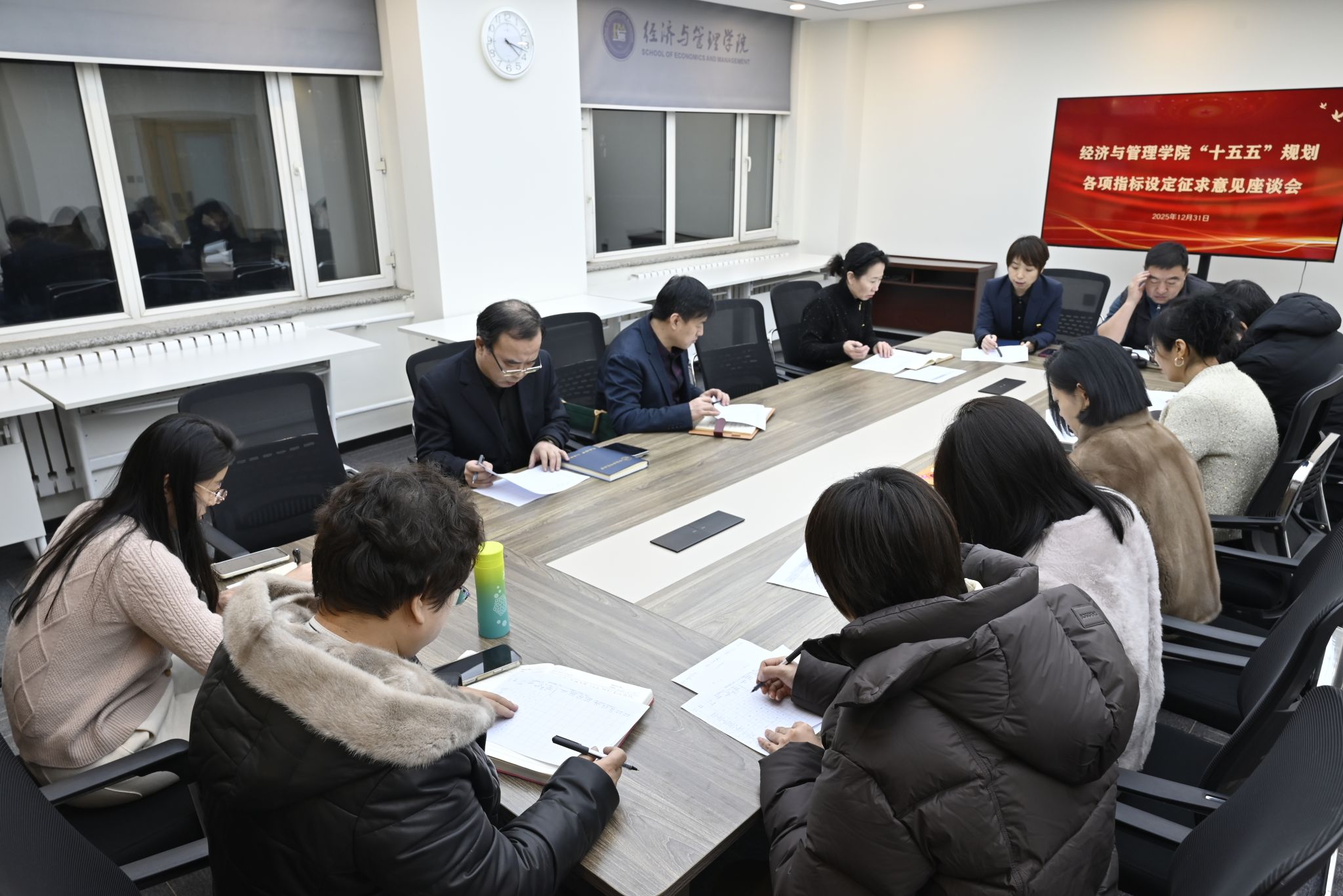 为深入贯彻落实学校“十五五”发展规划总体部署,确保学校战略蓝图在学院层面精准落地、高效执行,哈尔滨师范大学经济与管理学院于12月31日16:00在崇师楼A221召开座谈会,聚焦学校下达的核心指标,进行深入解读、意见征求与责任分解。学院领导班子、各系主任、学科带头人及教师代表参加会议,共同谋划学院未来五年高质量发展的具体路径与行动方案。
