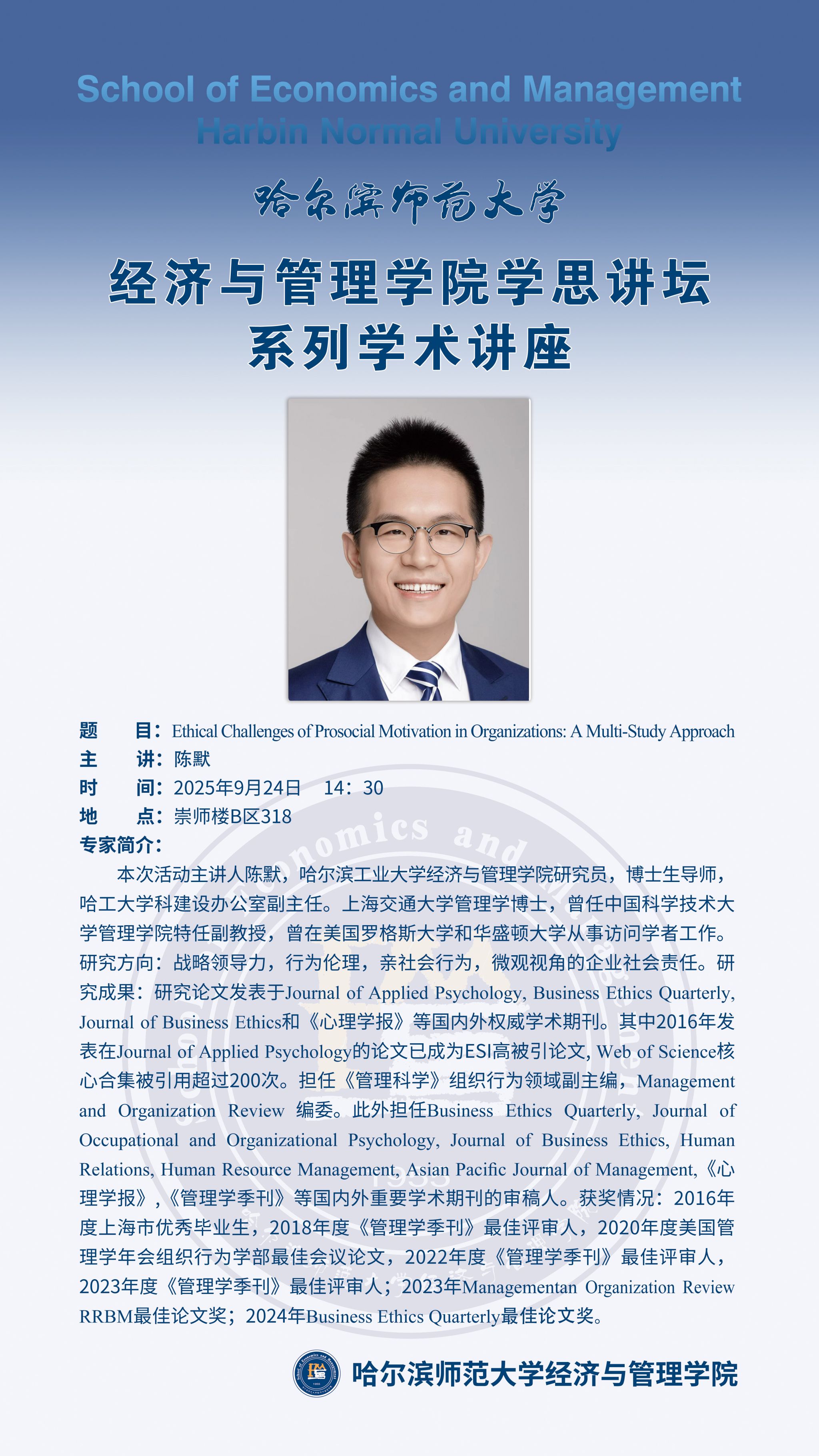 学思讲坛:Ethical Challenges of Prosocial Motivation in Organizations: A Multi-Study Approach