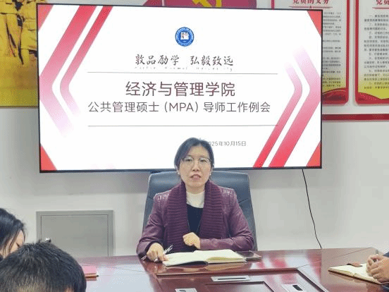 为统筹部署新学年公共管理硕士(MPA)招生及培养各环节工作,持续拓宽招生渠道、提升培养质量,保障MPA专业的长期稳健发展,经济与管理学院于2025年10月15日下午2:00在崇师楼A208召开MPA导师工作例会。本次会议由经济与管理学院副院长、MPA专业负责人祁凯主持,全体MPA硕士导师参加会议。