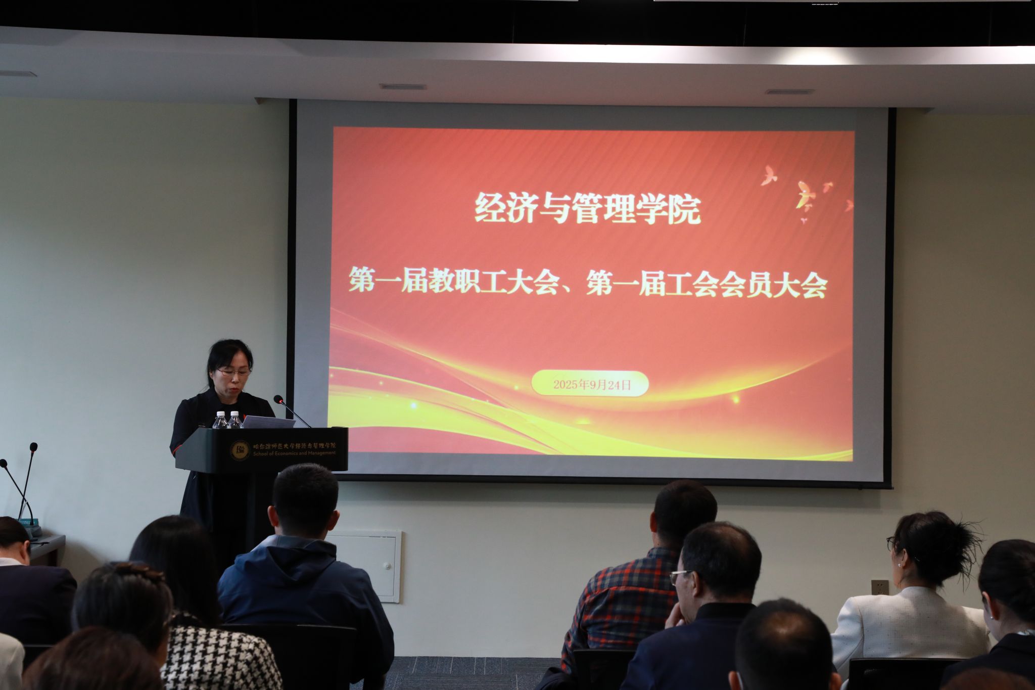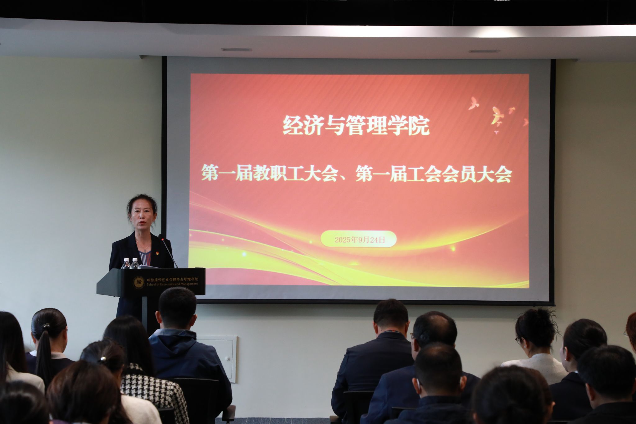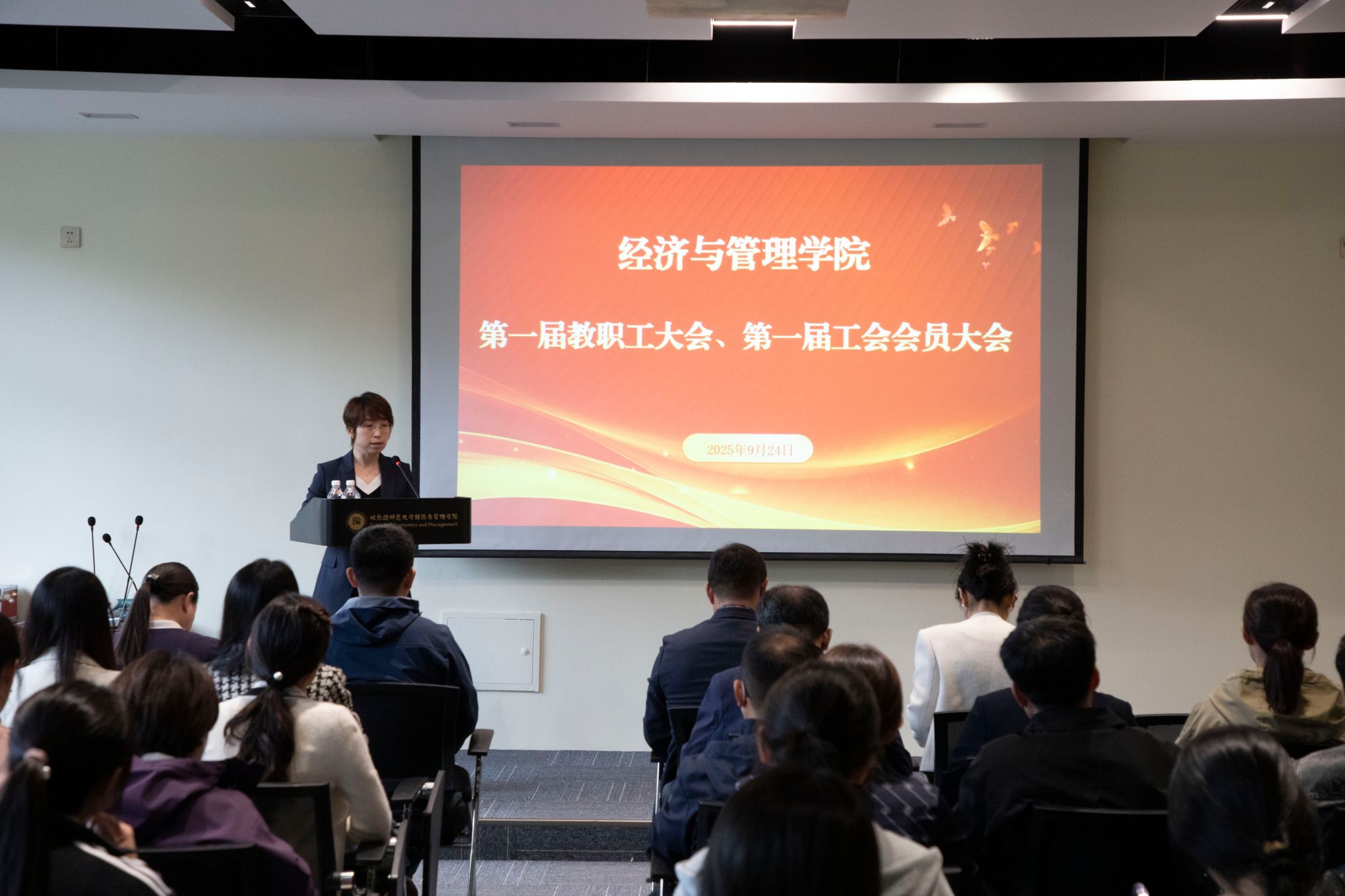 伴随着庄严的国歌声,经济与管理学院第一届教职工大会、第一届工会会员大会正式开始。